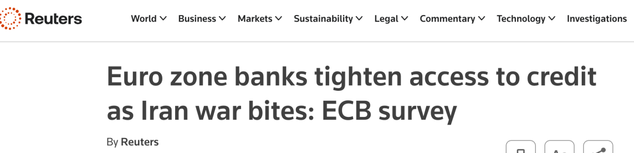 欧洲央行表示,在截至6月份的三个月内,银行预计“信贷标准将出现广泛且更明显的净收紧”。